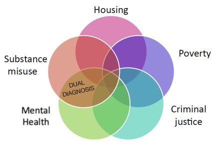 Multiple Disadvantage (MD) refers to experiencing several complex issues simultaneously, such as homelessness, substance use, mental health challenges (see article attachment for figures). These issues interact to create ‘meta-issues’ and emergent experiences. The dominant paradigm ignores these emergents, and frames the issue as problematic individuals. The Charity adopts an alternative paradigm: MD is a systemic issue, not an individual one, and works to raise awareness and transform systems and services. This study focuses on levering the system by improving understanding for stakeholders who design and deliver services.