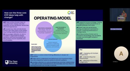 How might Open University colleagues support one another in thinking differently and acting with purpose? Anne Gambles introduced the early stages of a long-lived systemic inquiry within The Open University Systems Thinking in Practice (STiP) Community of Practice (CoP), co-developing strategy through Soft Systems Methodology and Hypothesis-Driven Delivery. Starting with Why?, Focusing on Outcomes and treating the CoP as a living case study, using STiP methods to guide and reflect on our development. Through our evolving approach, we aim to deepen STiP capability and create value at multiple levels - individual, STiP CoP, The Open University and beyond.